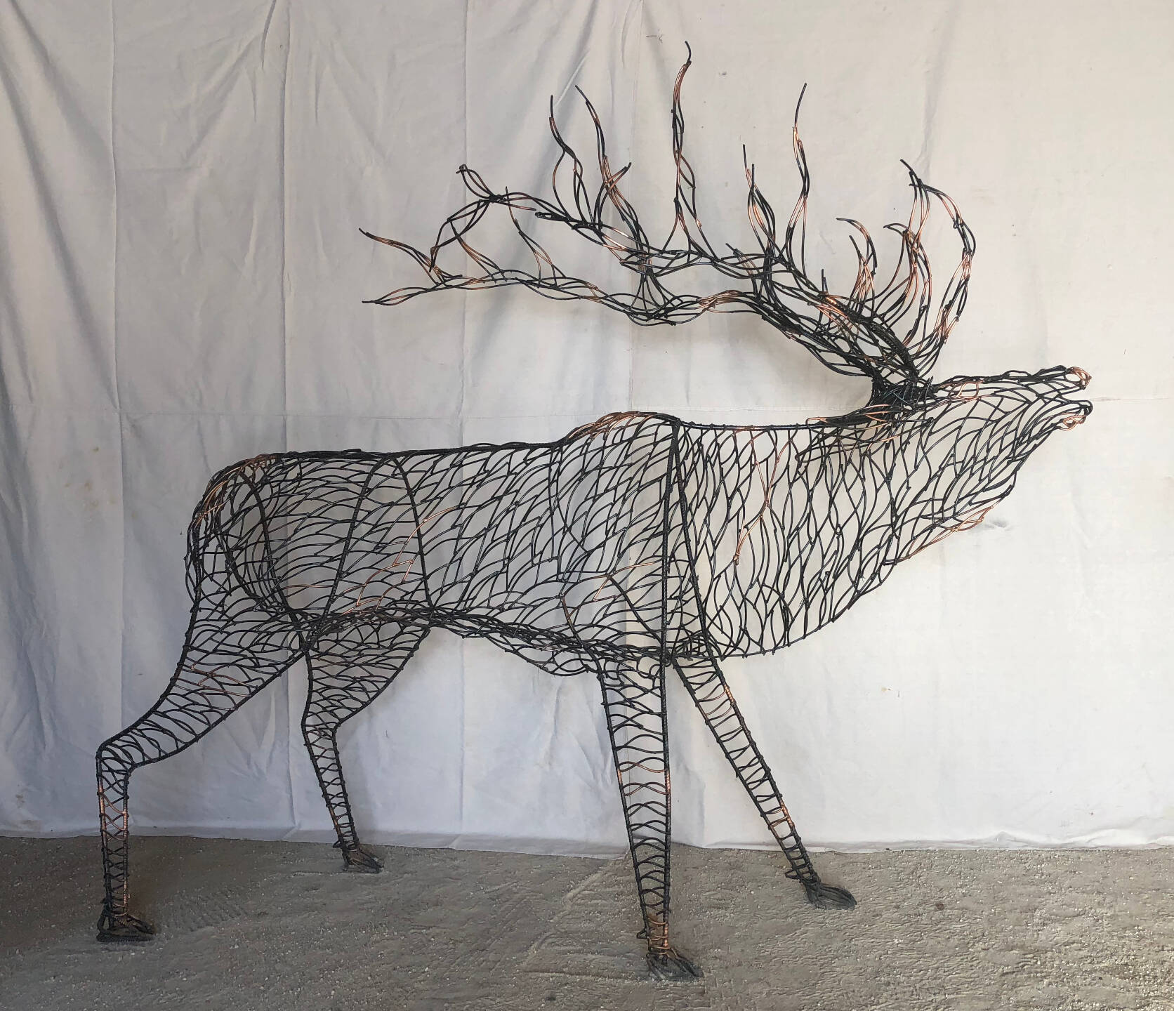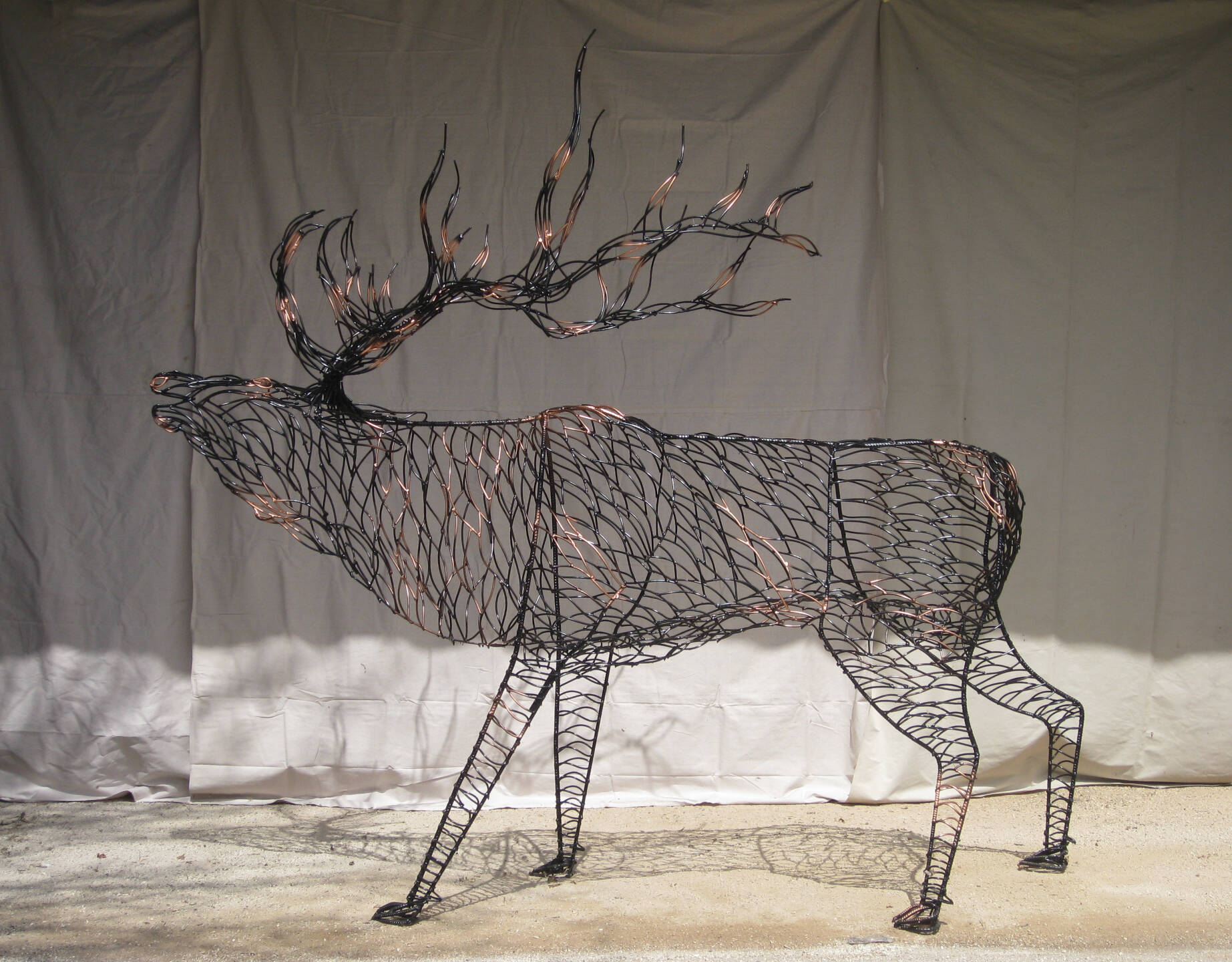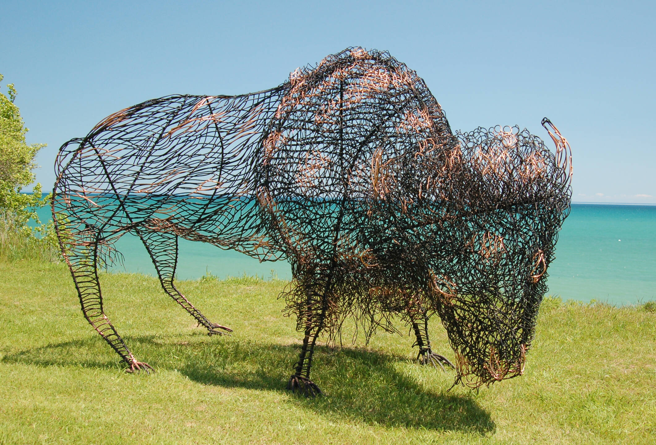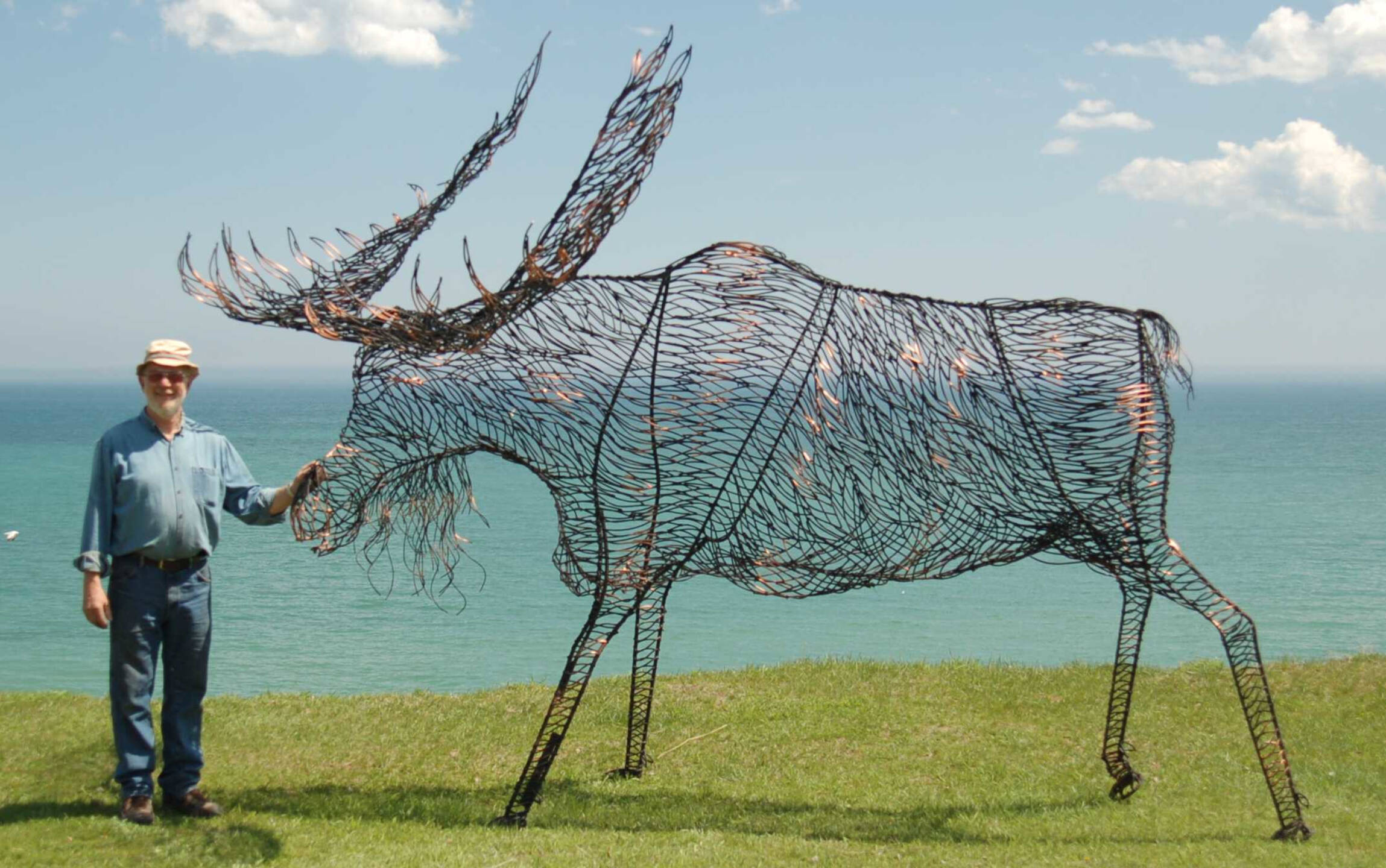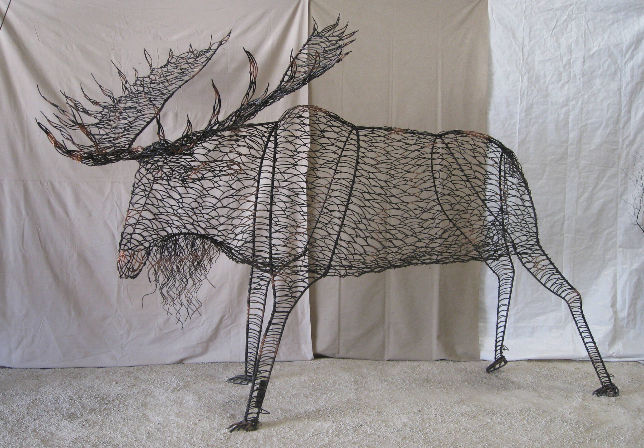 Moose – 9 feet 1 inches high and the top of the shoulder is 7 feet high.Moose – 9 feet 1 inches high and the top of the shoulder is 7 feet high.Moose – 9 feet 1 inches high and the top of the shoulder is 7 feet high.Elk – 9 feet 1 inches high and 5 feet 5 inches high at the shoulders.Elk – 9 feet 1 inches high and 5 feet 5 inches high at the shoulders.Elk – 9 feet 1 inches high and 5 feet 5 inches high at the shoulders.Buffalo – 6 feet 3 inches high and 10 feet long – tips of the horns are 3 feet apart.Buffalo – 6 feet 3 inches high and 10 feet long – tips of the horns are 3 feet apart.Buffalo – 6 feet 3 inches high and 10 feet long – tips of the horns are 3 feet apart.Caribou – Reindeer – (picture is on Lake Michigan) 6 feet 3 inches high overall (38 inches high at the shoulders) and 57 inches long.Deer – 7 feet 8 inches high and 6 feet 5 inches long.Deer – 7 feet 8 inches high and 6 feet 5 inches long.Wolf – 4 feet 9 inches high and 53 inches long.Bear – 10 feet 7 inches high and 5 feet 2 inches wide.Bear – 10 feet 7 inches high and 5 feet 2 inches wide.Bear on a Rock – 8 feet 1 inch high and 10 feet 2 inches long.Bear – 9 feet 3 inches high and 3 feet 11 inches wide.Bear – 10 foot 4 inches high.Bear Cubs – about 50 inches high.Bear Cubs – 27 inches high and 34 inches long.Bear Cubs – 27 inches high and 34 inches long.Tortoise – 17 inches high and 27 inches wide.Snapping Turtle – about 7 inches high and 21 inches long.